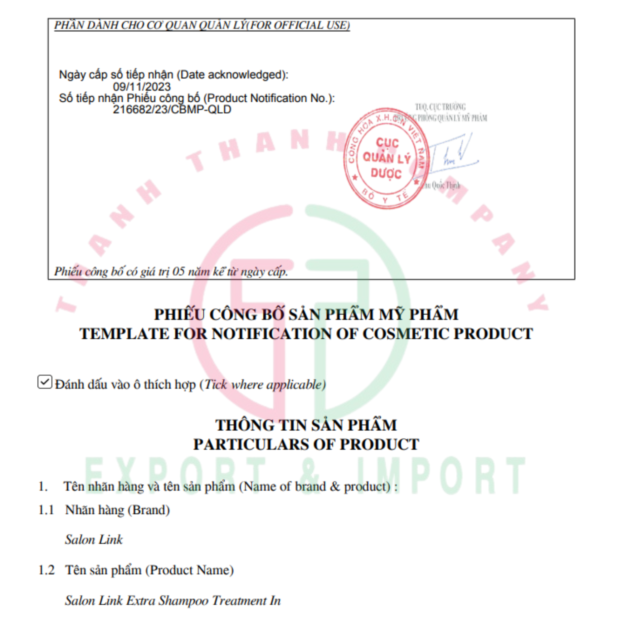 Dầu Gội Chăm Sóc Tóc Uốn, Nhuộm - Salon Link Extra Shampoo Treatment In (1000ml) サロンリンク EXトリートメントインシャンプー1000ML