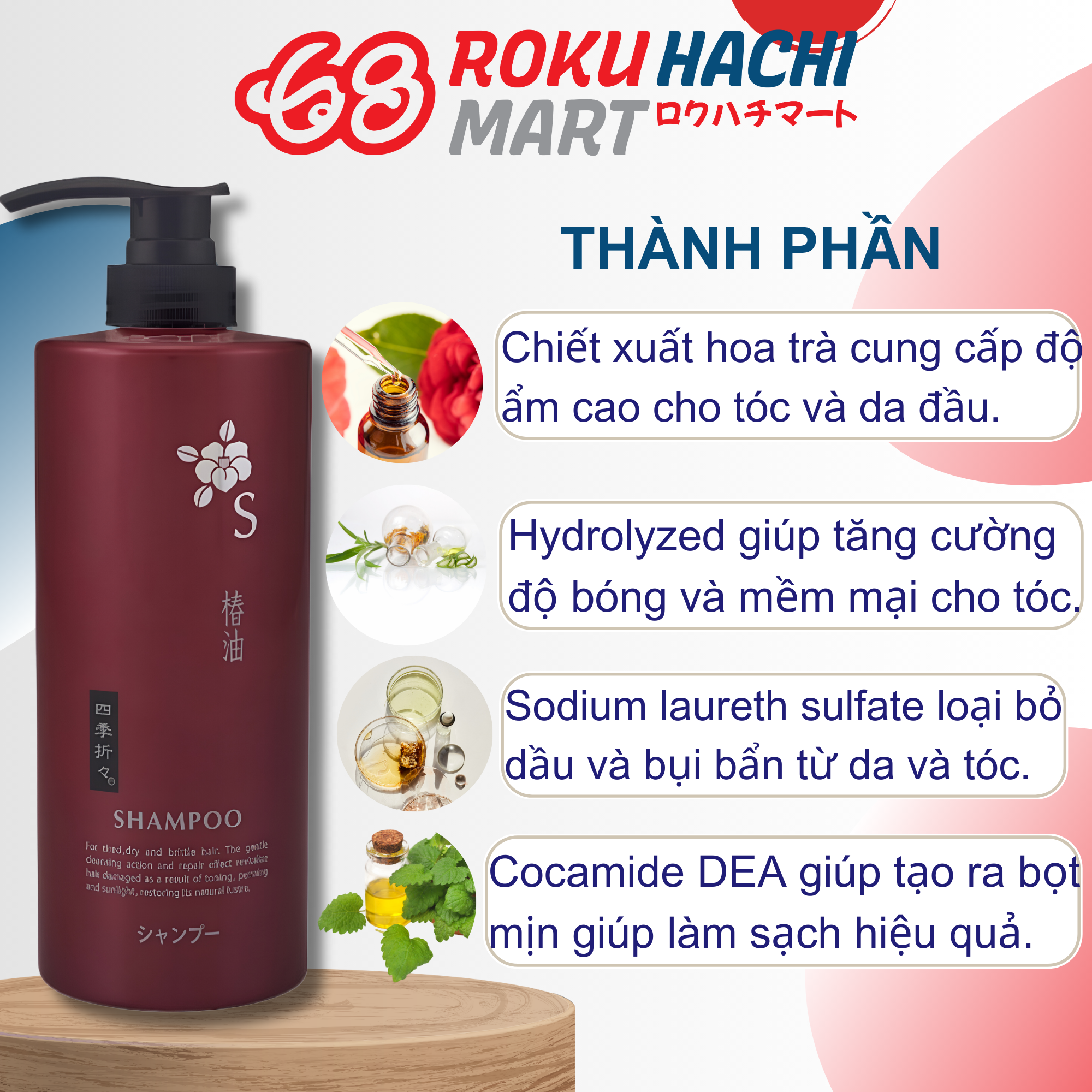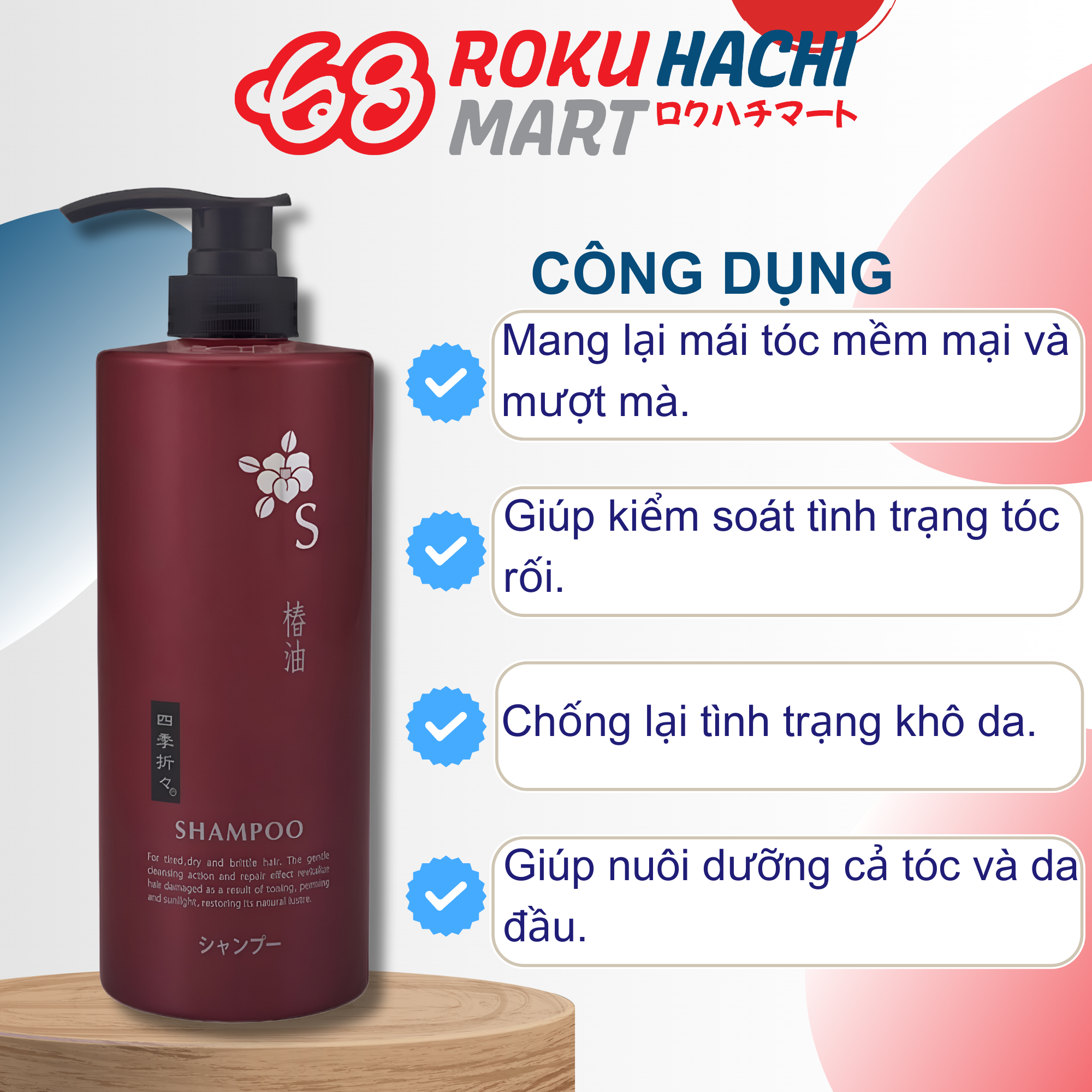 Dầu Gội Dưỡng Ẩm Dầu Hoa Trà - Shikioriori Tsubaki Oil Shampoo (600ml) 四季折々 椿油シャンプーボトル600ML