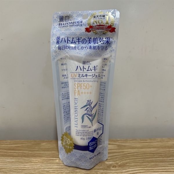 Kem Chống Nắng Hatomugi Dưỡng Ẩm - Hatomugi The UV Milky Gel SPF50+ PA++++ (80g) 麗白ハトムギUVミルキージェルSPF50+80G