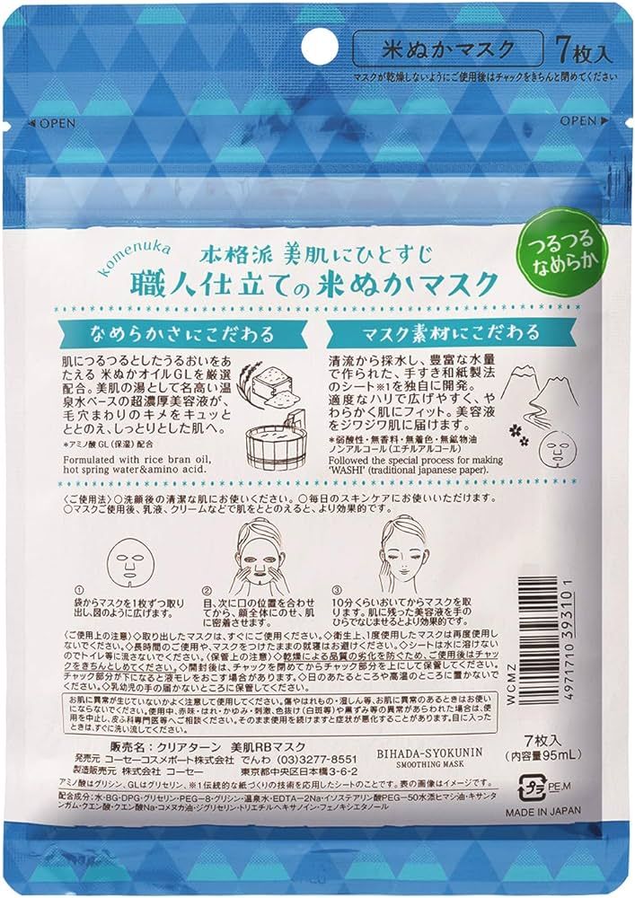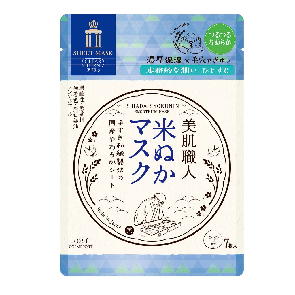 Mặt nạ chiết xuất cám gạo dưỡng trắng da CLEAR TURN BIHADA (7 miếng) クリアターン 美肌職人 米ぬかマスク
