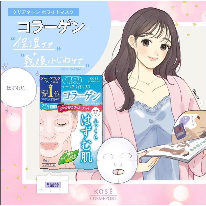 Mặt nạ dưỡng da cấp ẩm bổ sung Vitamin B5 (5 miếng) コーセー クリアターン ホワイトマスク コラーゲン