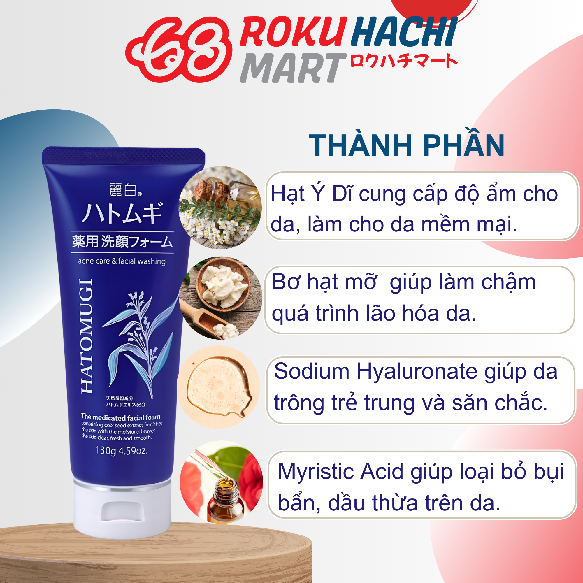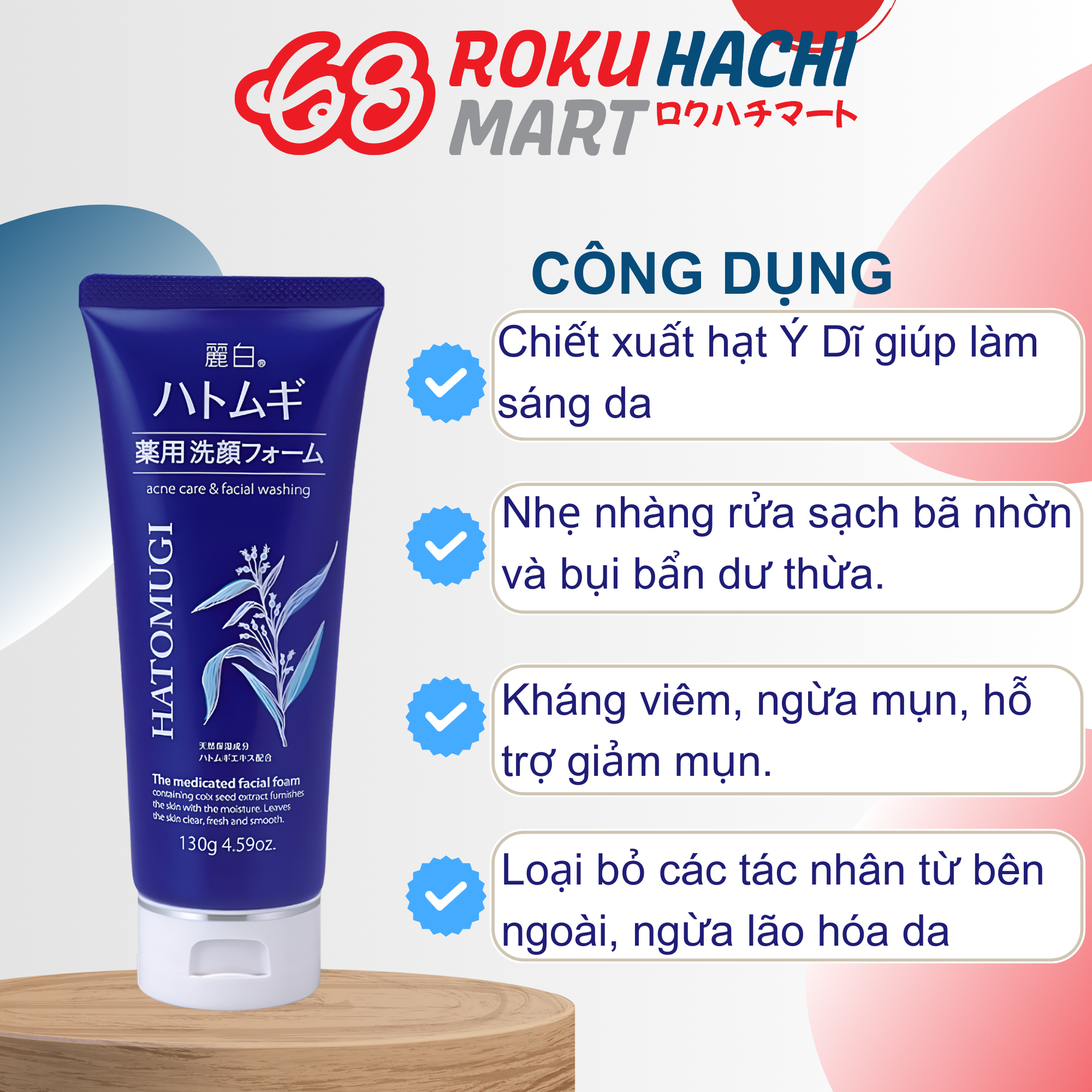 Sữa Rửa Mặt Hatomugi Chiết Xuất Ý Dĩ Hỗ Trợ Ngừa Mụn - Hatomugi The Medicated Facial Foam (130g) 麗白 ハトムギ薬用洗顔フォーム130G