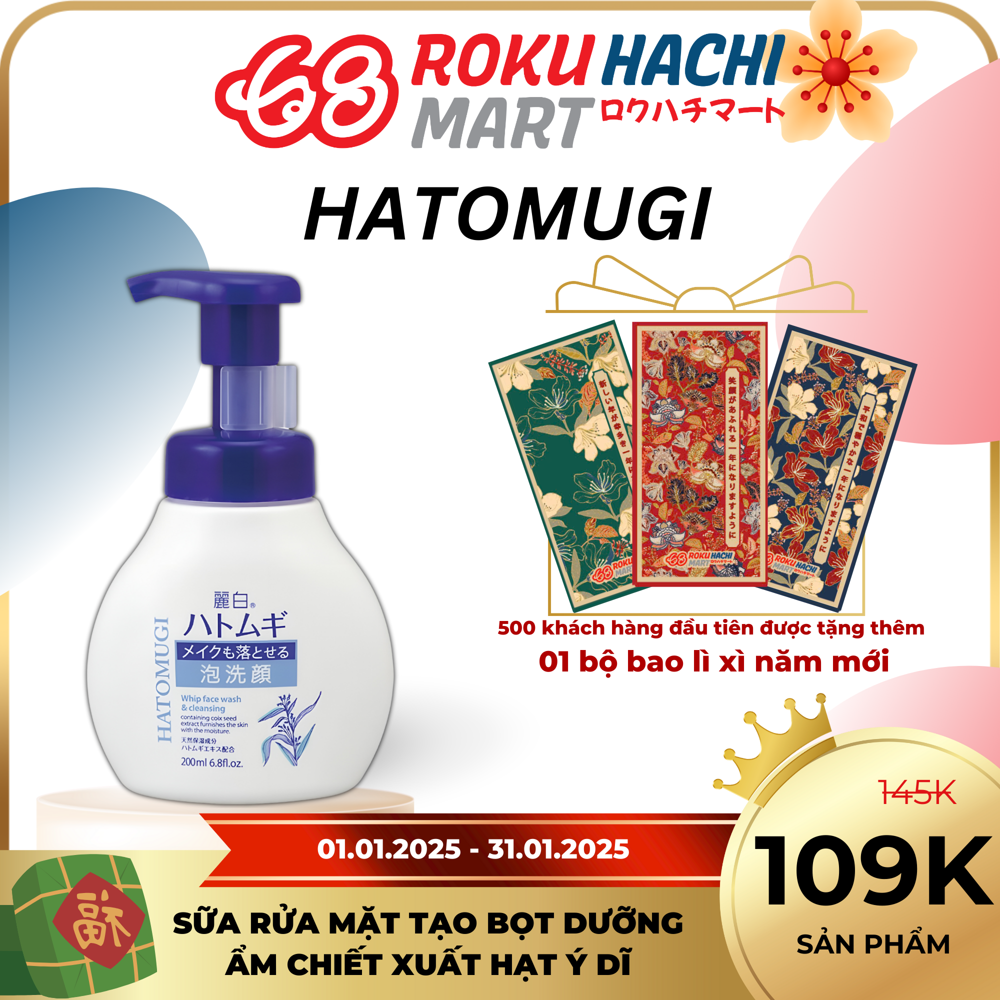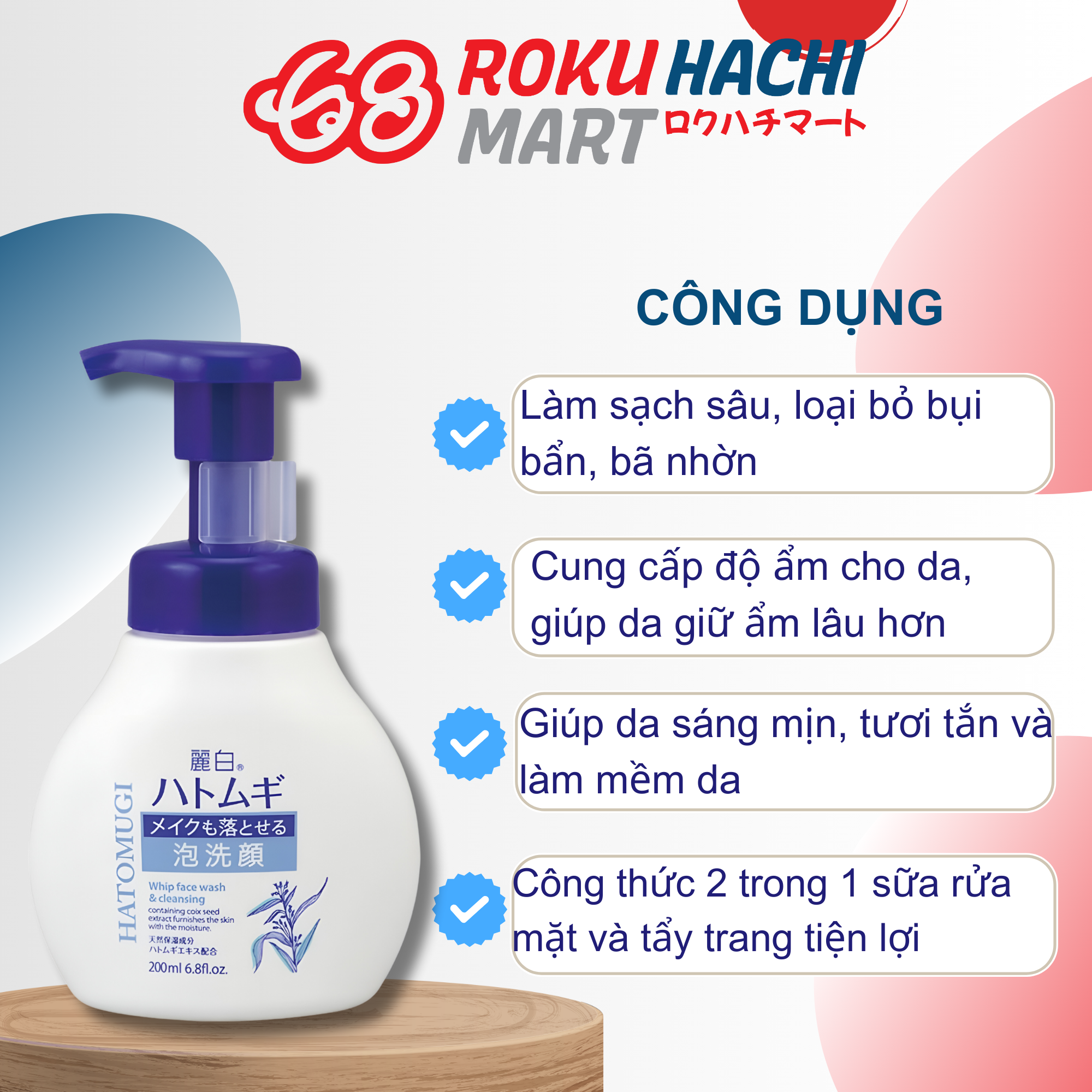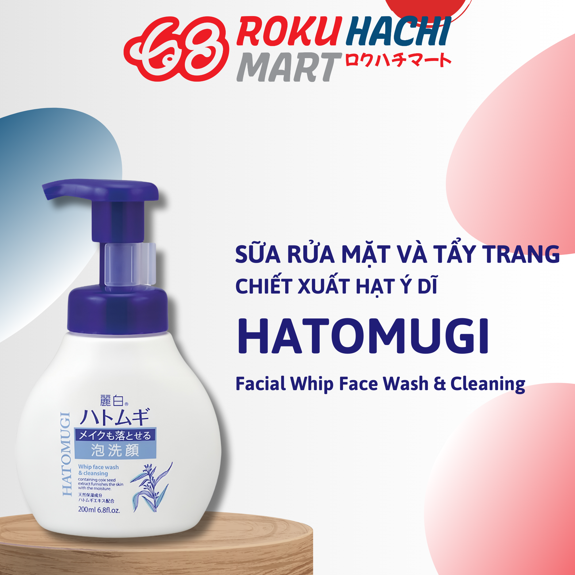 Sữa Rửa Mặt Hatomugi Tạo Bọt Tẩy Trang - Hatomugi Whip Face Wash & Cleaning (200ml) 麗白 ハトムギ メイクも落とせる泡洗顔200ML