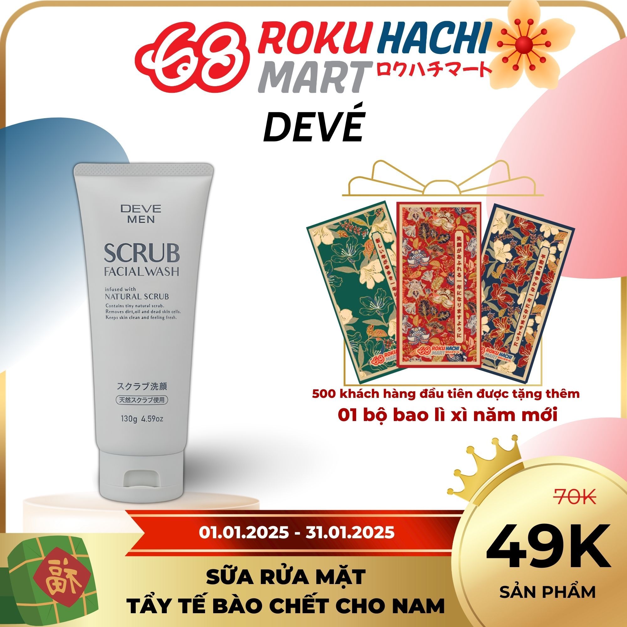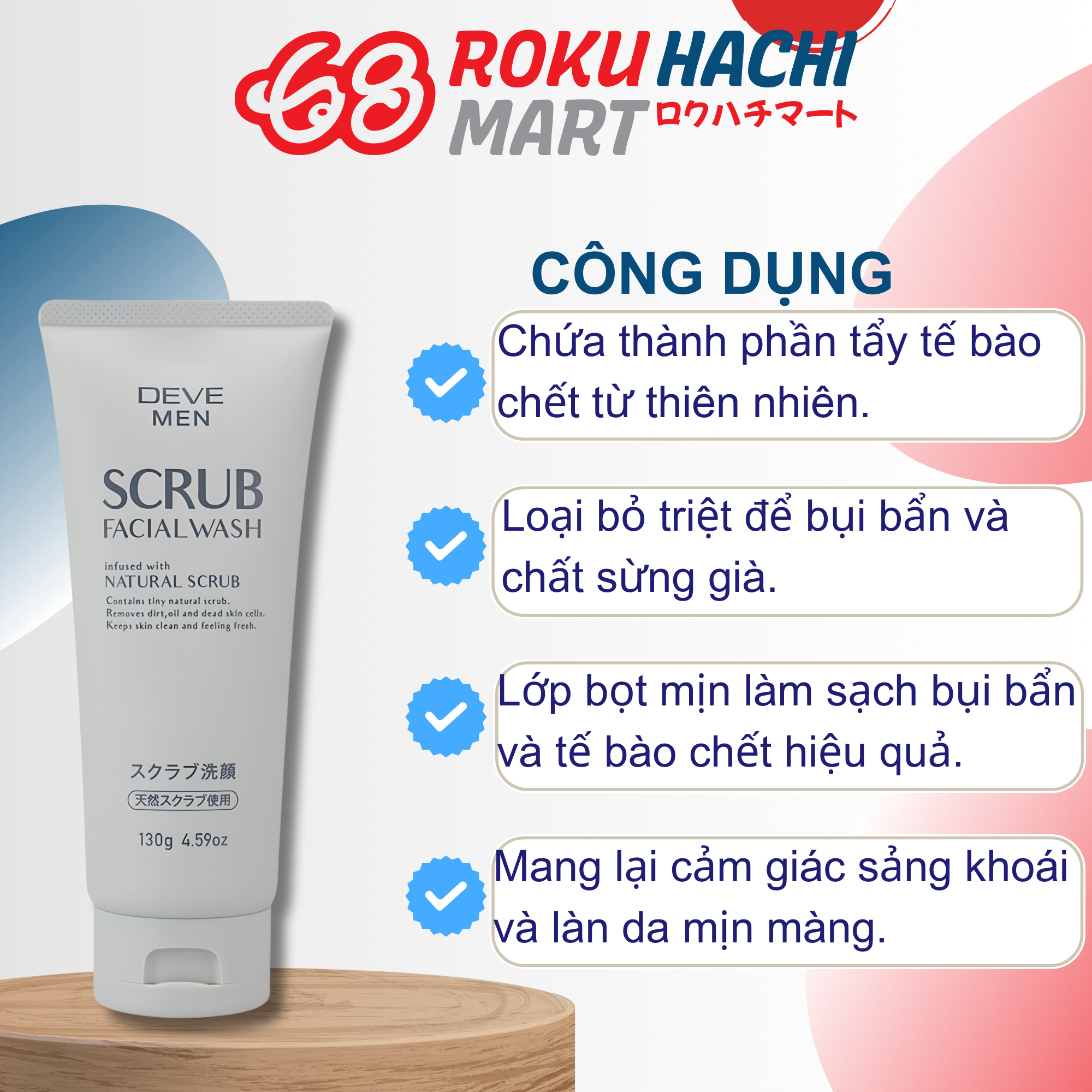 Sữa Rửa Mặt Tẩy Tế Bào Chết Cho Nam - Deve Men Scrub Facial Wash (130g) ディブメン スクラブ洗顔フォーム 130G